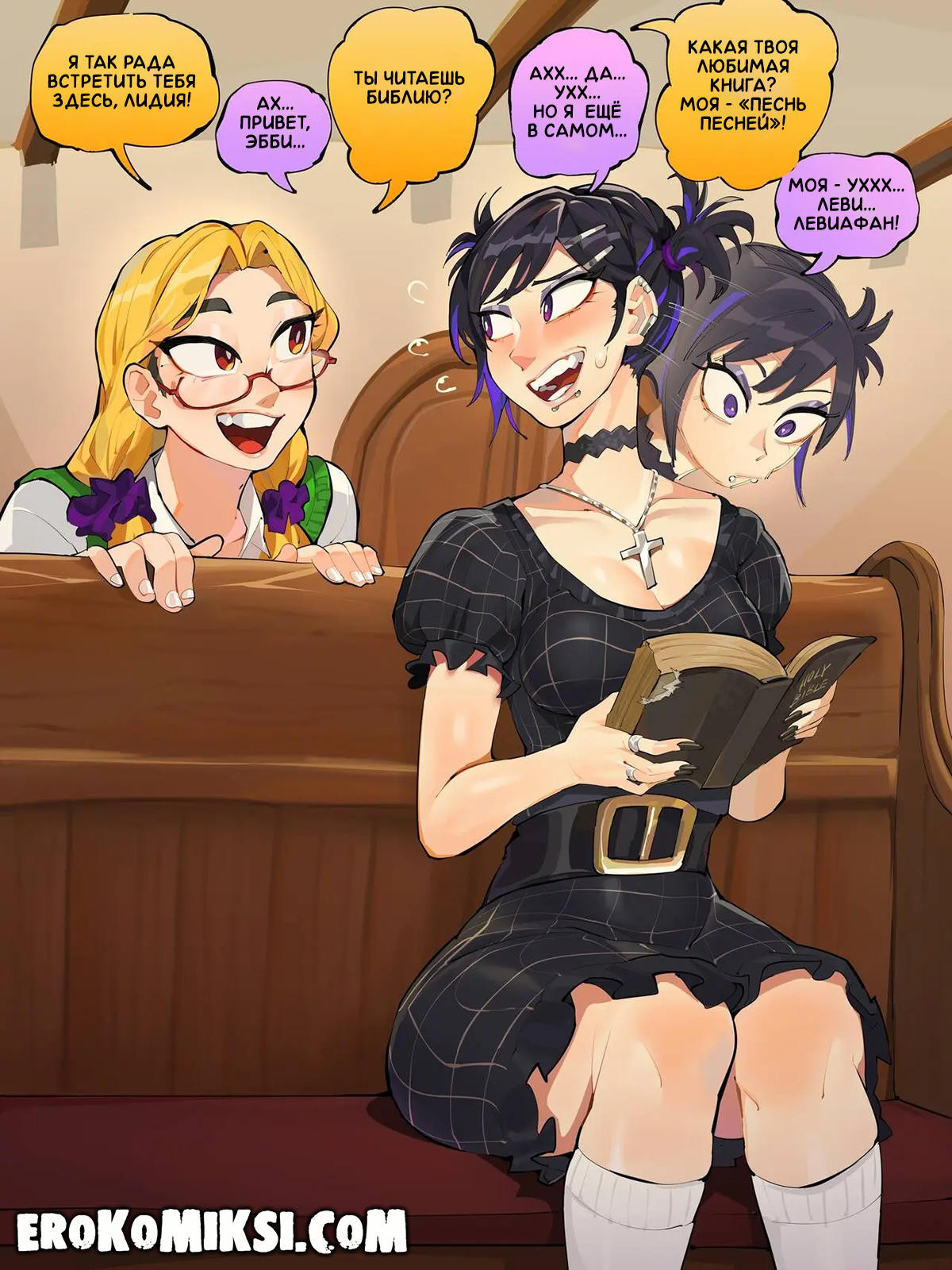 Порно комикс Развлечения с Эбигейл. Эбигейл молодая красивая девушка, которая поёт в церковном хоре и ведёт порядочный образ жизни. Но однажды, она занялась сексом и это ей безумно понравилось, и как говорится, пошла во все тяжкие и при первой же возможности, Эбигейл оголяла свои большие сиськи и раздвигала ножки…