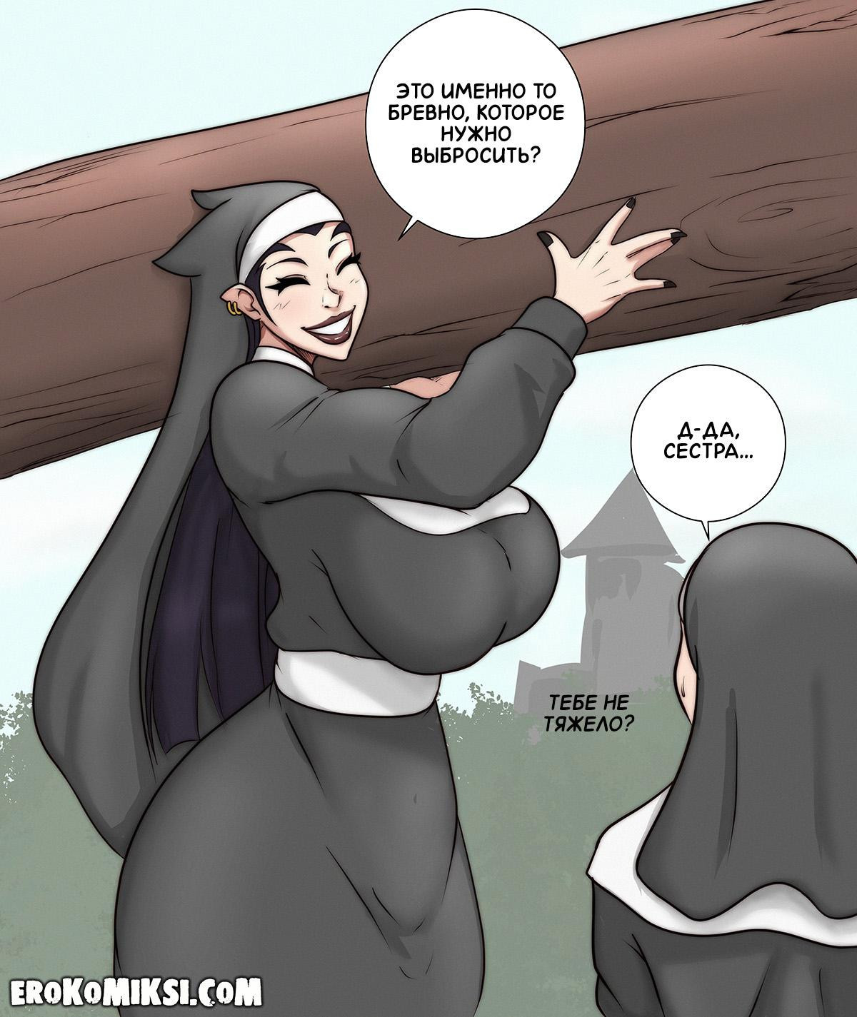 Порно комикс Встреча с Тимом. Монахиня-дьяволица встречает паренька Тима, от которого исходит странный знакомый запах, и она решает его проверить, и отводит в мотель, где снимает с паренька штаны и видя его огромный член, набрасывается на него…